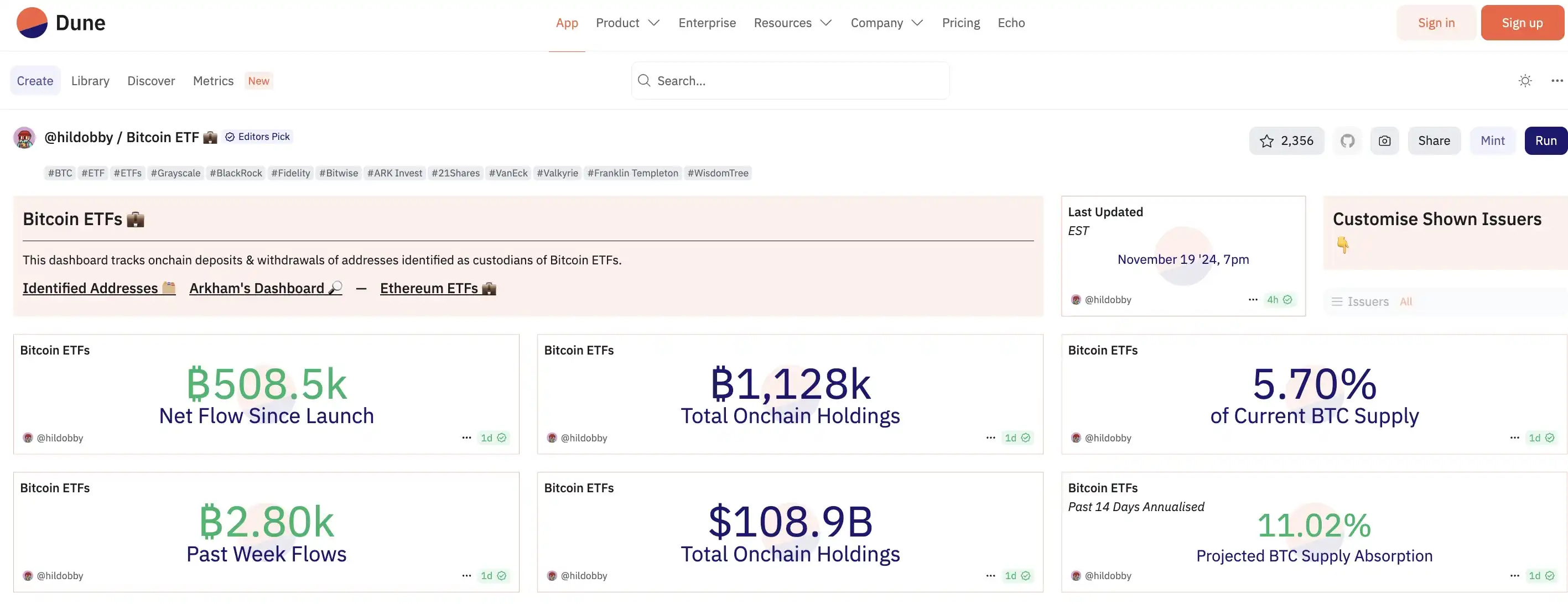 早在 10 月下旬,Ripple CEO Brad Garlinghouse 就曾发文表示,XRP ETF 是「不可避免的」。其主要依据来自于日益增长的比特币现货 ETF 增长份额。据**数据显示,美国比特币现货 ETF 链上总持仓量突破 112 万枚 BTC(约为 112.8 万枚 BTC),占当前 BTC 供应量的 5.7% ;链上持仓价值达 1089 亿美元。