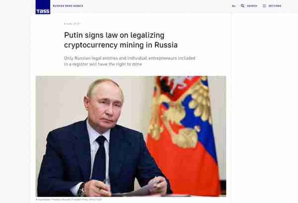 普京:允许在国际贸易中使用加密货币支付,俄罗斯加密货币挖矿将合法化