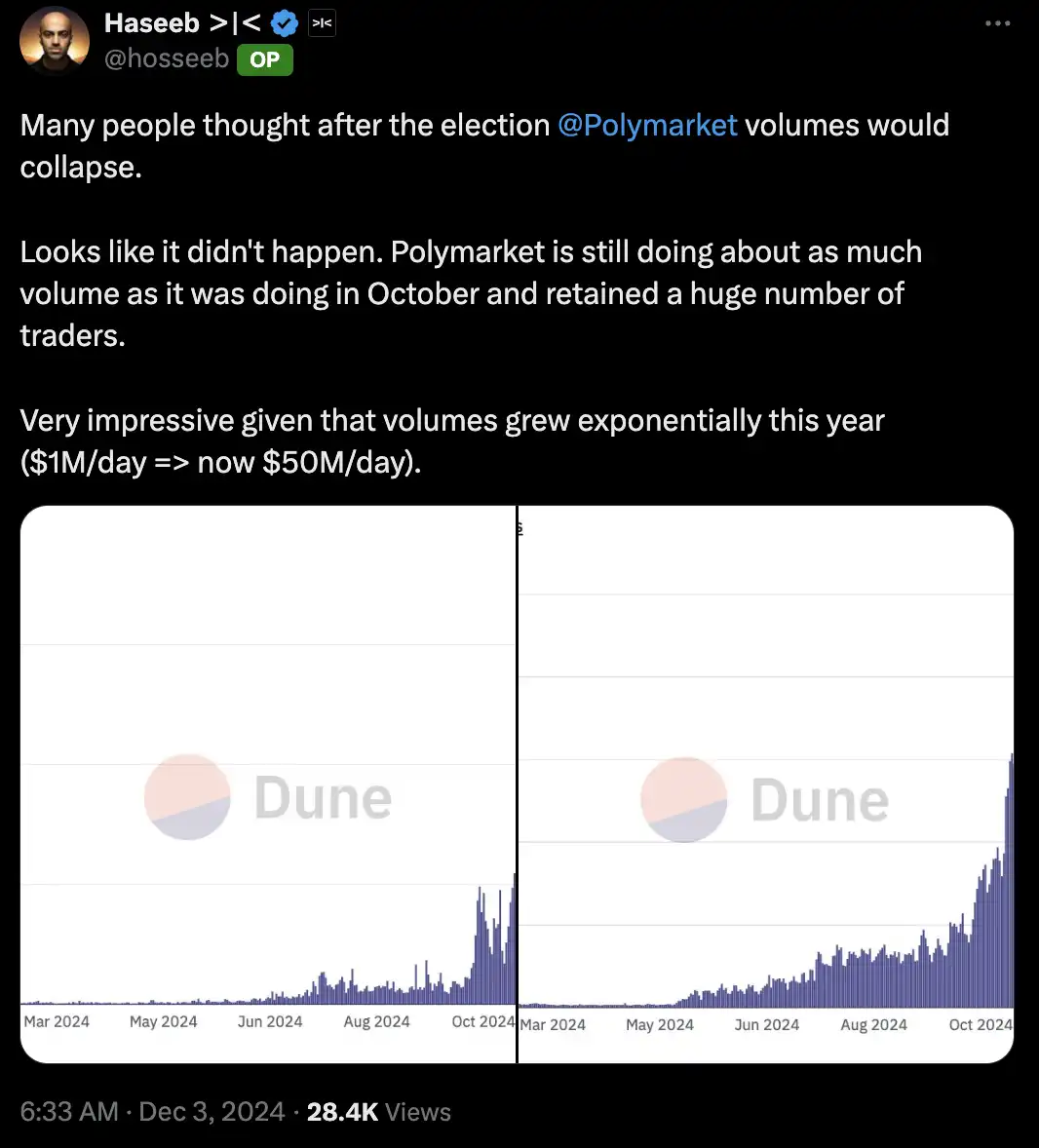 1.Polymarket 数据并没有市场预期的那么惨 ;@hosseeb