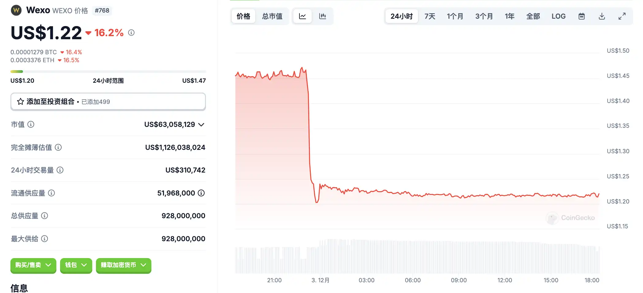 12 月 3 日**波动情况,按交易量筛选并排列