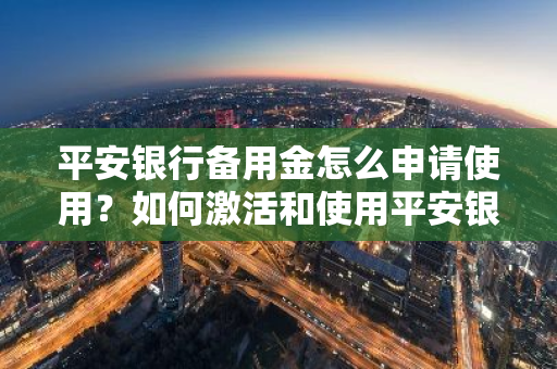 平安银行备用金怎么申请使用?如何激活和使用平安银行备用金?