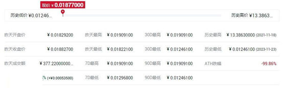 XCV币的历史**价是1.8756美元,出现在2021年11月18日,它的历史**价是0.01746美元,出现在2023年11月23日。