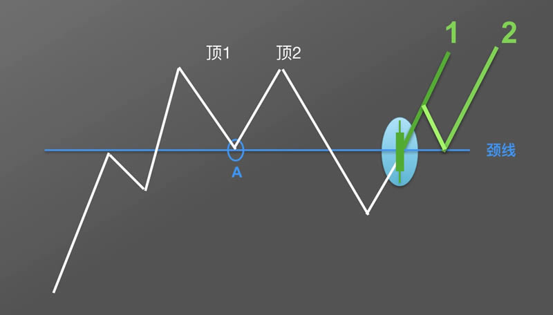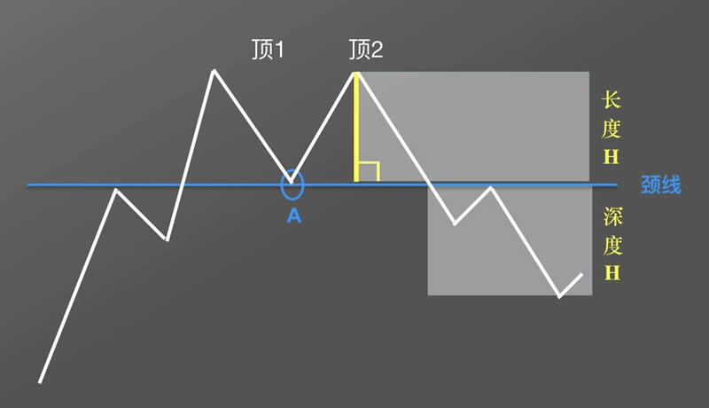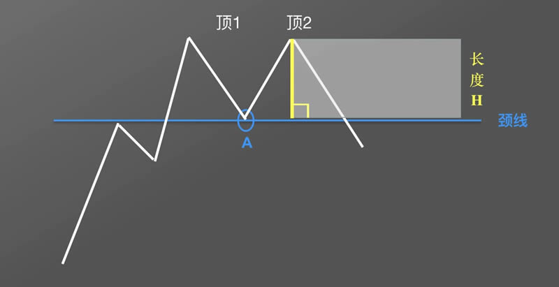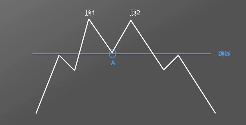 首先找到两顶之间的**点A,穿过A点画一条水平直线,得到颈线。