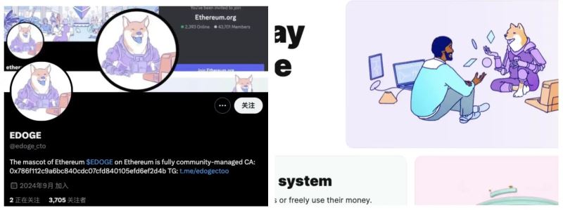 $EDOGE 概念来自以太坊官网(ethereum.org)上的一只宇航员狗狗,它在网站的各个页面中经常出现,因此被社区视为以太坊「官方网站的吉祥物」。但 @0x Bit 90536646 在推特上表示,$EDOGE **在代码层面留有卖出数量限制、**交易额和**持仓可改、交易税可改、可以设置白名单和黑名单等诸多后门。