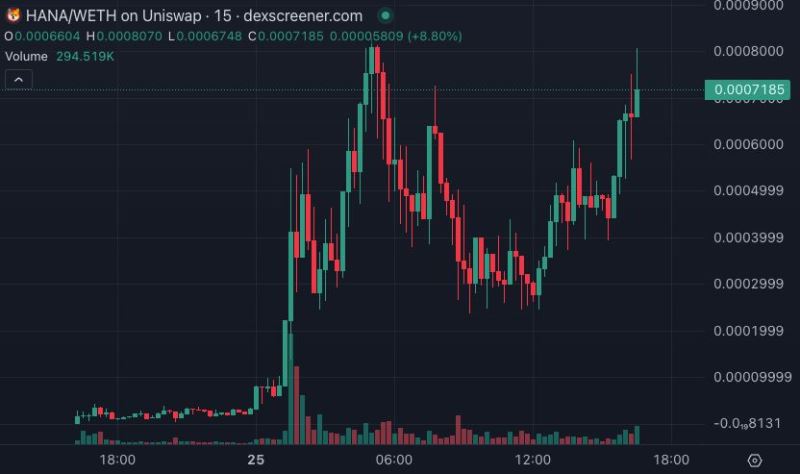 HANA 是网传 SHIBA Inu 原型宠物的名字,$SHIB 作为经典狗狗 meme,市值如今已突破 80 亿美元,而 HANA 作为 SHIB 的「原型狗」,被不少 KOL 称为「SHIB 的继承者」。@Mirro 7777 在 X 上表示$HANA **出自「阴谋集团」,且吸取了此前 DOGGO 操盘失败的经验,盘内留有一些内幕地址。