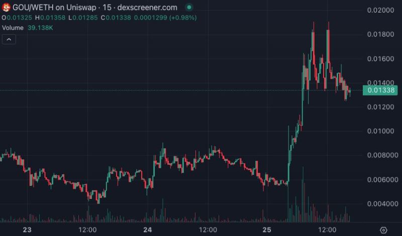 据社区成员表示,$GOU 是由 Neiro 社区鲸鱼与海外 KOL 联合打造的狗狗 meme,** Ticker 是汉字「狗」的汉语拼音,与大部分狗狗 meme 显著不同的是,$GOU 的推特账号运营显得更加「专业」和「上档次」,过去几天接连举办了多场推特 Space。