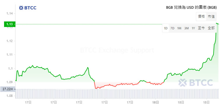 而在7 月14 日**遇刺后,整体加密货币市场上涨,BGB 币也水涨船高,一度触及$1.10。