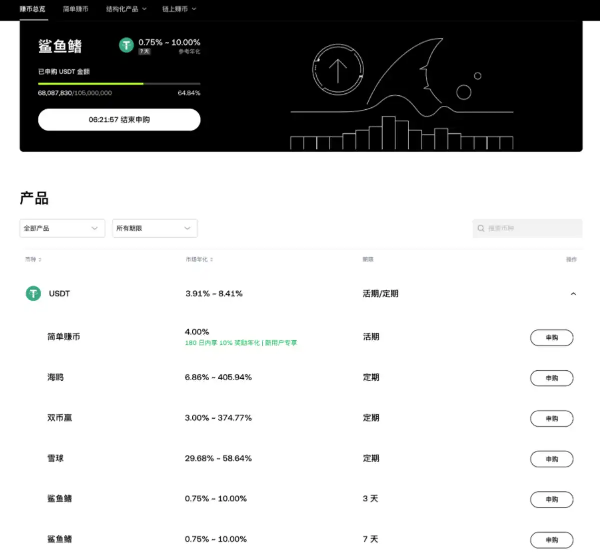 OKX 提供了多种稳定币理财选项,USDT 7 天年化** 10%,可以根据自己的风险偏好选择合适的产品,随时赎回,适合短期理财需求。