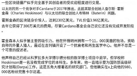 再比如Ethereum Classic(ETC)的市值为46亿美元,但在2023年产生的费用低于41,000美元。 其他例子比如ADA,福布斯认为该**的受欢迎程度和其创始人Charles Hoskinson的受欢迎程度为正比,但这建立在谎言之上,Hoskinson声称自己从科罗拉多大学博尔德分校的数学博士课程中退学,但校方表示Hoskinson仅仅是本科辍学。