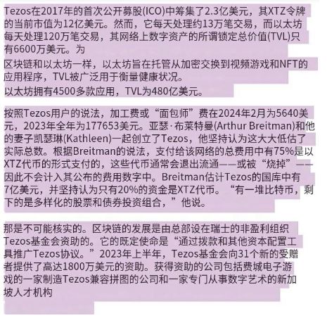 “Tezos 在 2017 年的**Token发行 (ICO) 中筹集了 2.3 亿美元,其 XTZ Token目前的市值为 12 亿美元。”