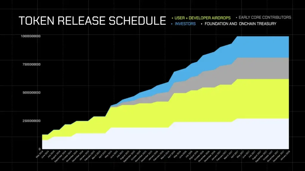 - 35%:用户及开发者空投。其中**季空投分配5.5% ,第二季空投分配5% ,剩余**将在未来的空投轮次中逐步分发;