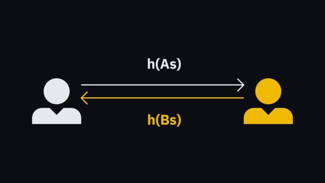 双方各提供一个秘密,我们称之为“As”和“Bs”。双方一旦透露秘密,结果不堪设想。因此,他们暂时要保守住秘密。两个秘密分别生成各自的秘密哈希值,即h(As)和h(Bs)。这样双方无需分享秘密,只需彼此分享哈希值。