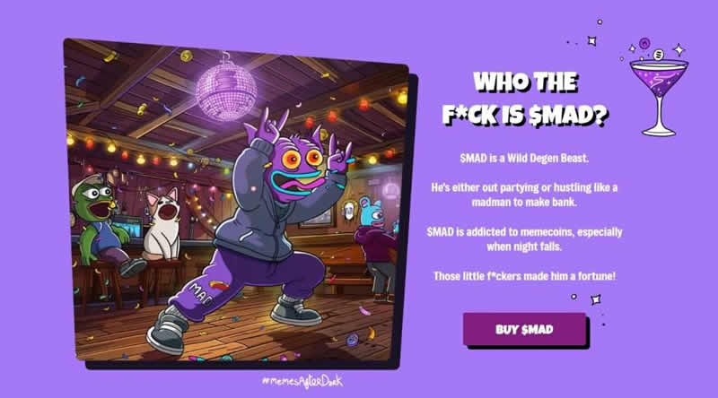 综上所述,MAD($MAD)是一种具有独特存在的迷因币,以其充满活力的社区和独特的MemesAfterDark 运动而闻名,超越了简单的交易和投机。