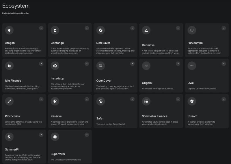 正如同 Morpho 在其使命中所说的那样——成为公共物品,打造为**人都可以用来构建自己的产品和服务的金融基础设施。要成为像 Uniswap 之类的 DeFi 底层协议,与整个 DeFi 赛道的集成必不可少。