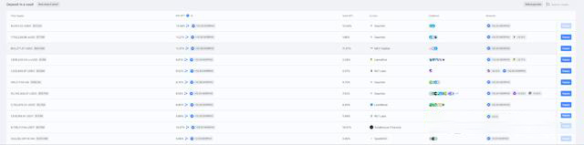 从存款利率来看,Morpho目前上APY**达到了11.4%,并有多个金库的APY在4%以上,普遍高于Aave(APY基本在3%~5%之间),而借款利率则与Aave差不多。另外,由于Morpho支持自建借贷金库,使得在Morpho上借款可以支持更多类型的资产。
