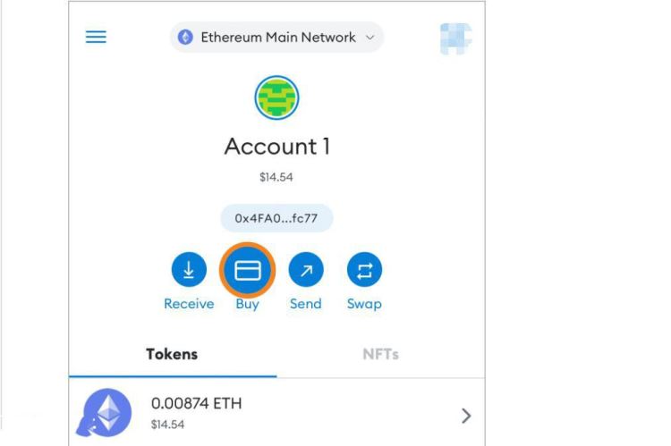 1、前往钱包主页,在屏幕**的“接收”与“发送”按钮之间,找到蓝色圆形的“购买”按钮。确保您目前在您想要购买加密货币的网络上。点击以继续。