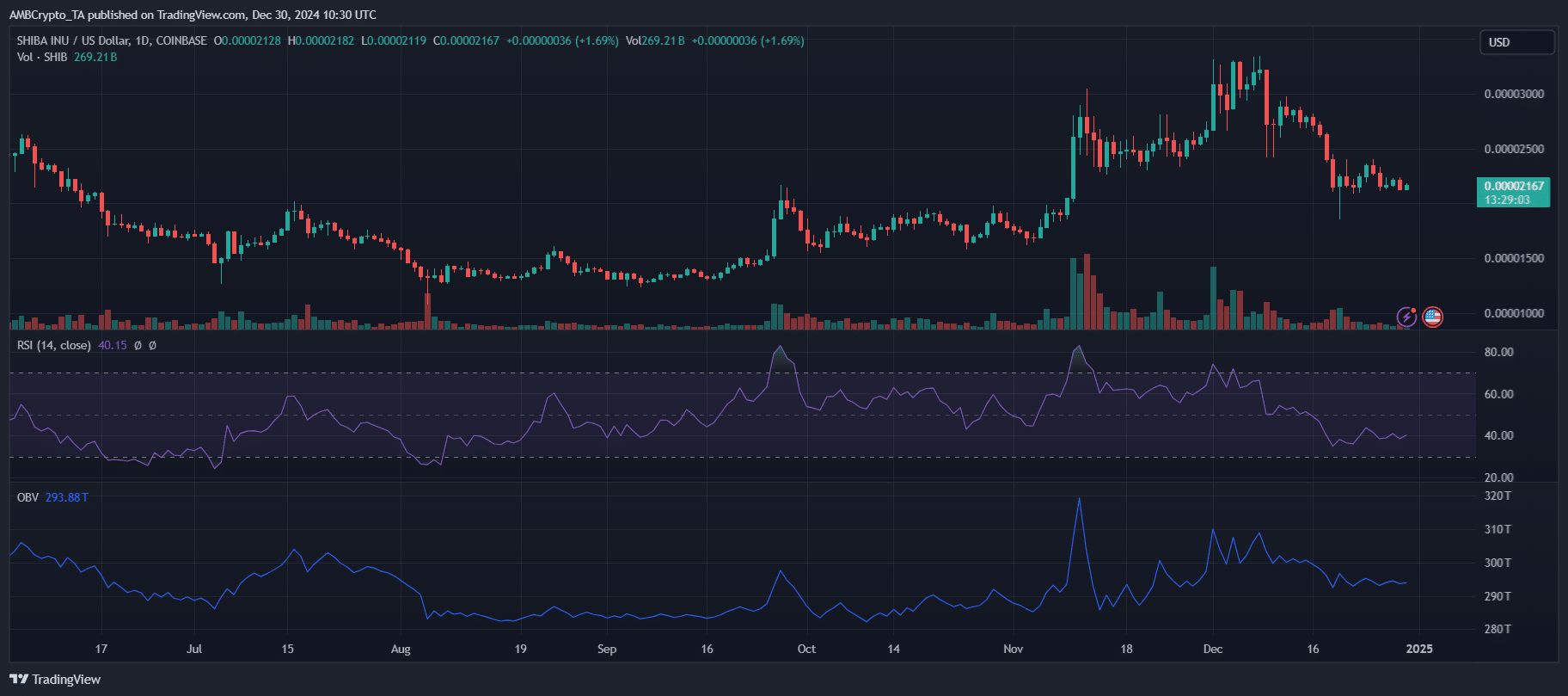新年伊始, memecoin的命运并没有立即发生改变。它在同一水平上挣扎,**遭遇挫折。不过,SHIB 并没有跌至之前的低点。
