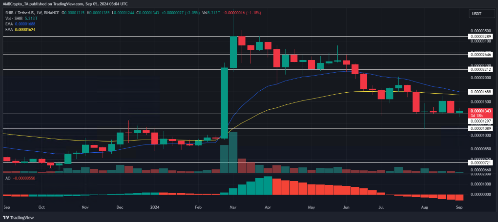 然而,本月晚些时候,SHIB 被卖家抢购一空。因此,SHIB 回到了之前的支撑位,并且自那时起一直保持在该支撑位附近。分析得出结论,其交易价格为 0.000013 美元。AMBCrypto 最近的 分析显示,SHIB 可能会在最近的阻力位遭遇阻力,因为短期势头有利于空头。