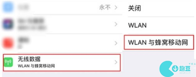 3.对于iOS,直接在通用里面找到**数据,然后选择WLAN与蜂窝移动网络,这样的话就可以顺利的连接成功。