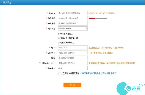 没有账号的用户点击注册,然后按照上面的要求填写信息,成功注册之后,即可登录抢票。